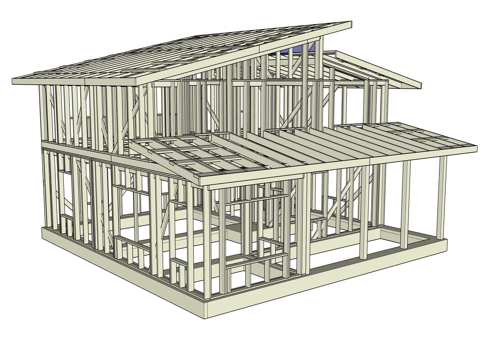 Содержит в себе все поэтапные схемы и чертежи по сборке каркаса дома